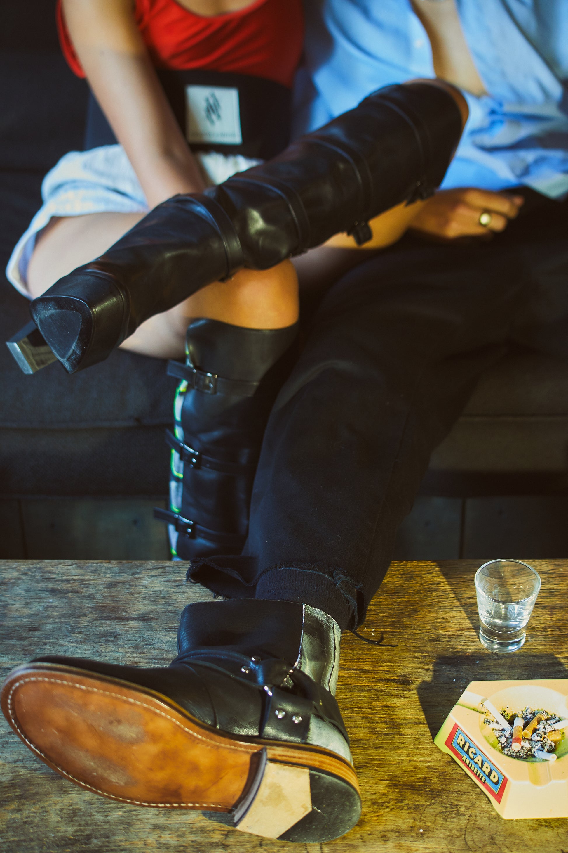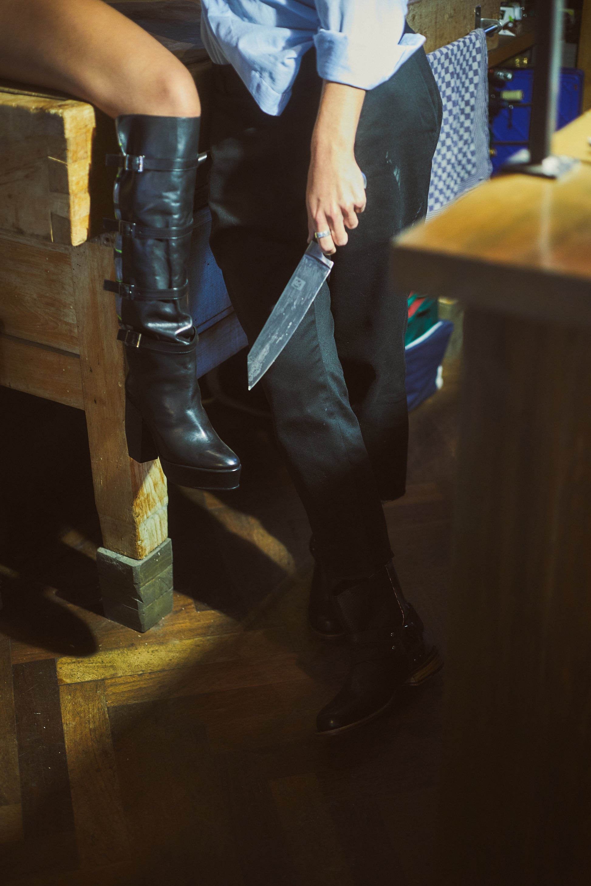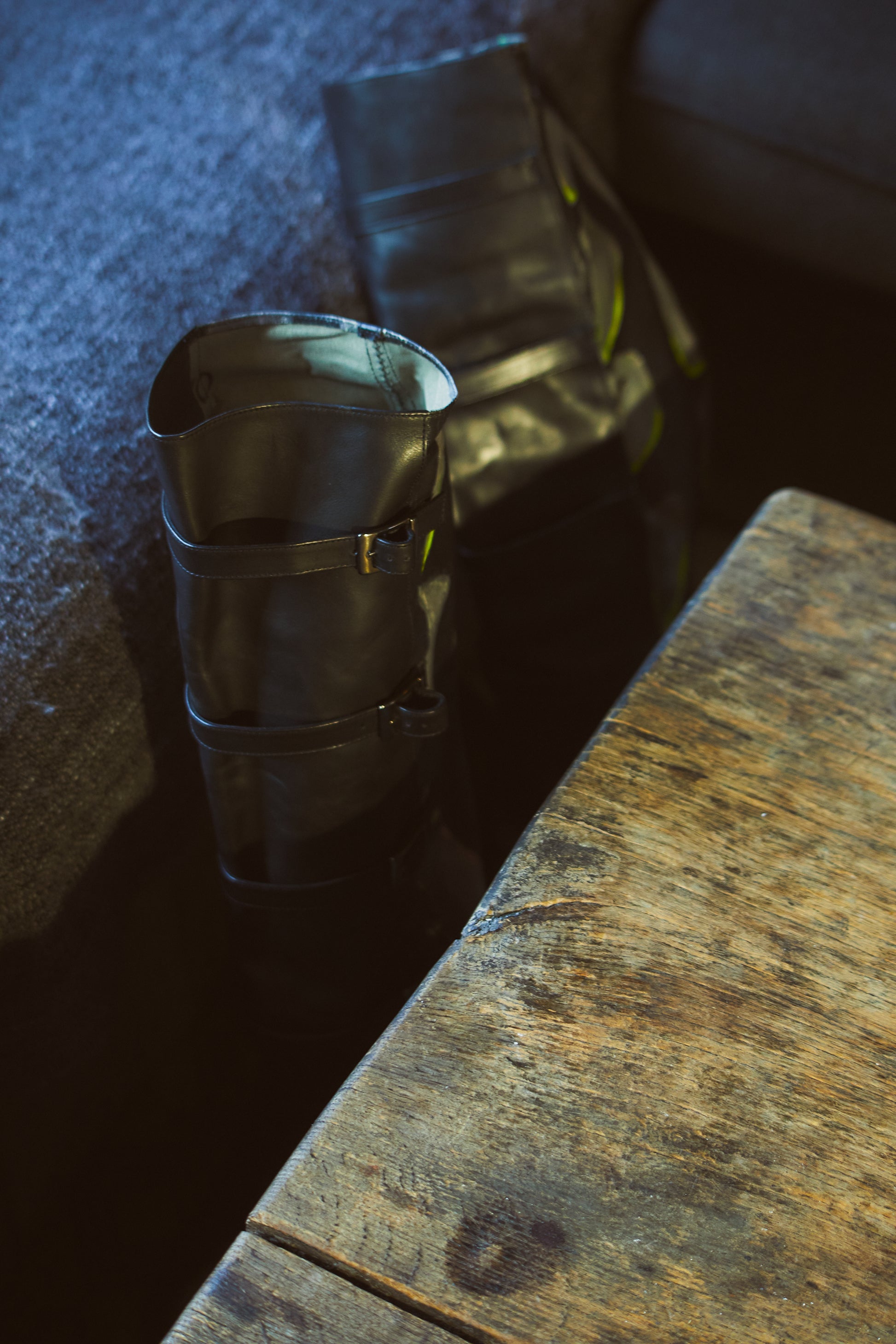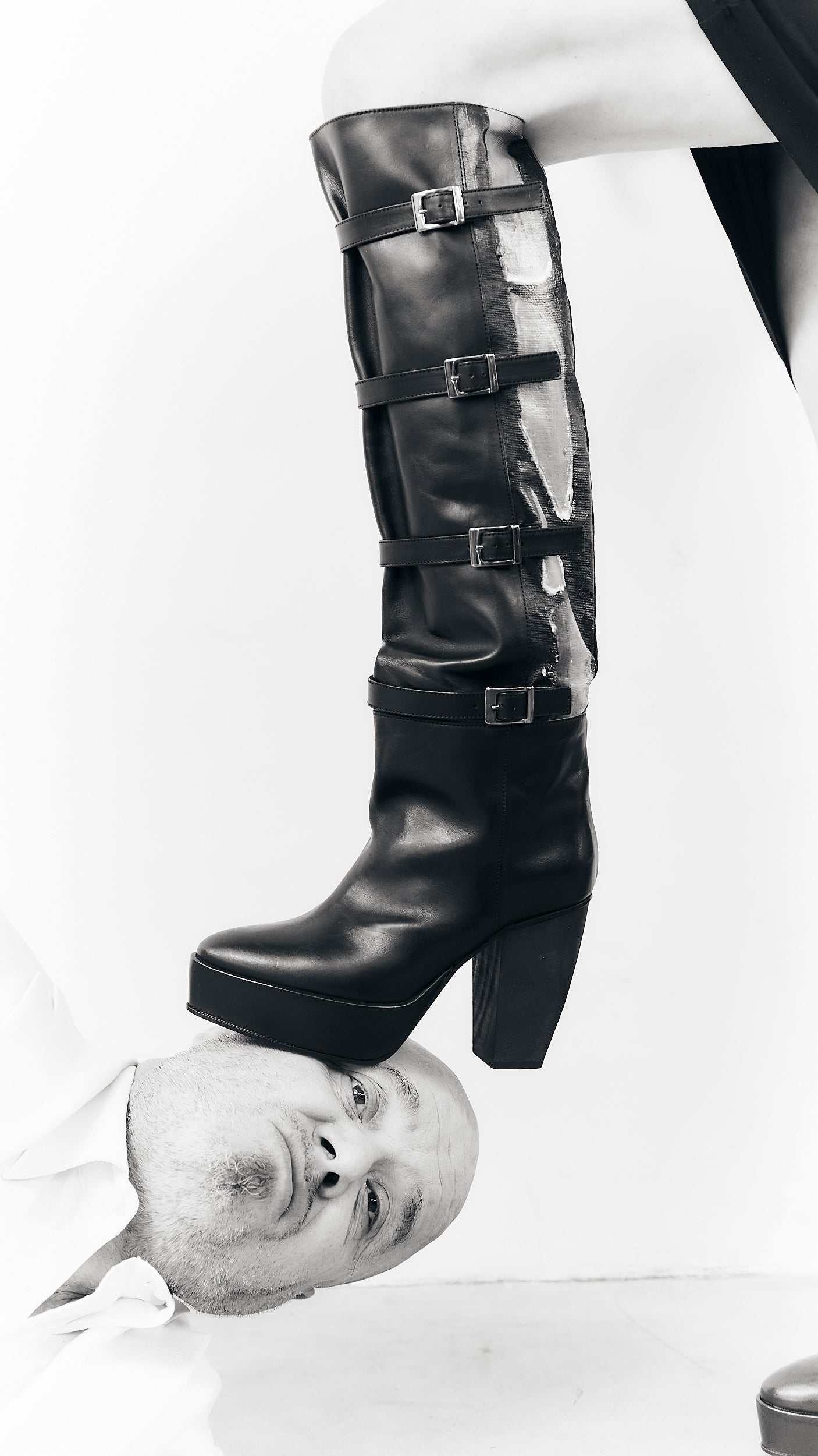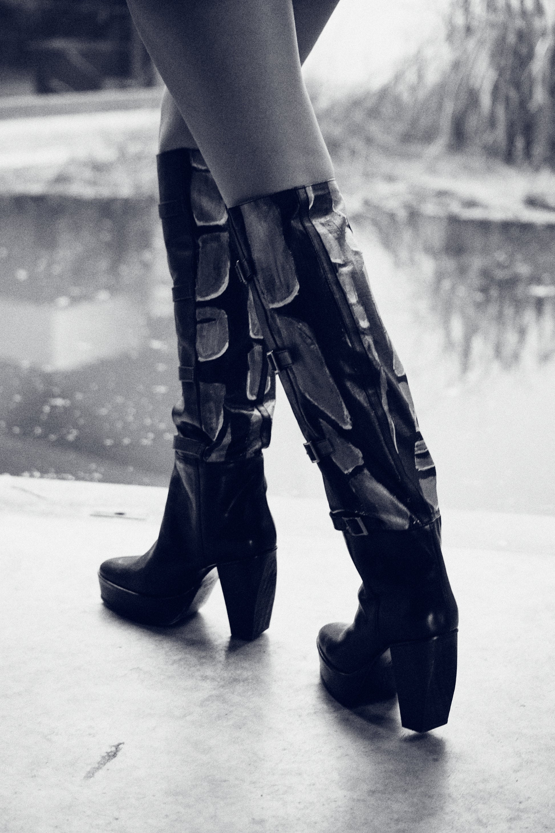 La Forêt relates to the fierce landscapes we saw in the broken crockery of Julian Schnabel's paintings. After we shared this with painter Ilse Vanderbeken, she started creating canvases unraveling the mystery of La Forêt. The parts of her paintings where the brush strokes merged with the layout of our footwear, were cut from the paintings, resulting in a unique appeal for each individual design. Unique piece. All La Forêt shoes and boots are individually numbered. The painted section is a cut-out of Ilse Vanderbeken's canvas 'La Forêt'.